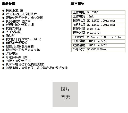 具有信號(hào)捕捉能力強(qiáng),誤報(bào)、漏報(bào)率低,低功耗和真實(shí)溫度補(bǔ)償?shù)奶攸c(diǎn)。產(chǎn)品技術(shù)含量高、制作工藝考究、外觀造型高雅,而且性能穩(wěn)定,使用壽命期長(zhǎng)。特殊的透鏡設(shè)計(jì),無(wú)下視死角,既可墻掛式也可吸頂式安裝。配合RA93安裝支架會(huì)更加方便地施工和安裝