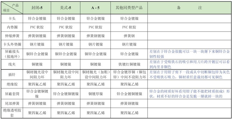 ????? 2.質量中上的(封閉基礎重新設計型和美式型)的就是線夾、插針和屏蔽套殼是銅的,插針還有鍍金。這種的是我們推薦客戶使用的,抗腐蝕能力還是比較強,這種的卡頭那里采取的是雙臺階設計,可以使公母連接的時候更緊密,而且屏蔽層采用的6開;(推薦使用)